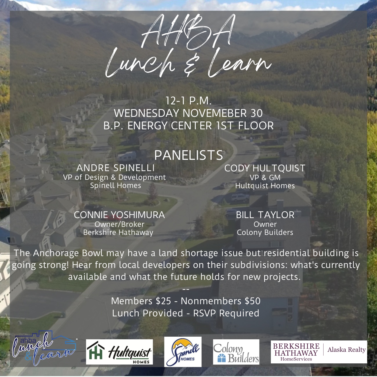 The Anchorage Bowl may have a land shortage but residential new construction is still going on! Hear from local developers on their subdivisions: what's currently available and what the future holds for new projects.
